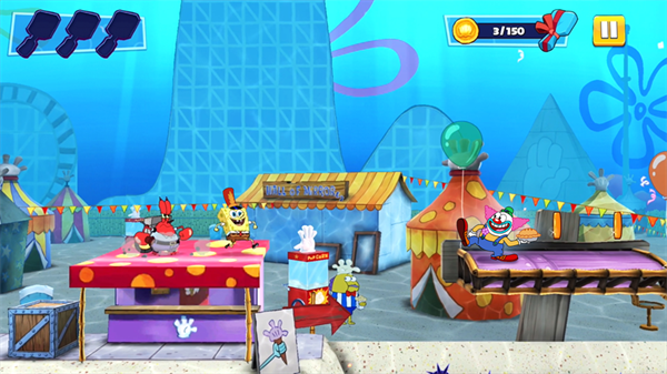 技能与道具系统:通过收集和升级,提升海绵宝宝的能力,解锁更多技能与道具。
