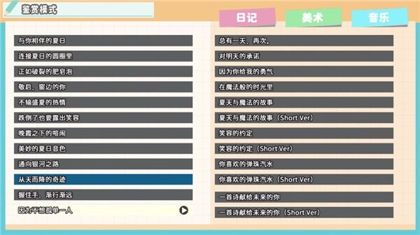 4、另外,在鉴赏模式中可以查看日记、音乐内容。