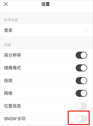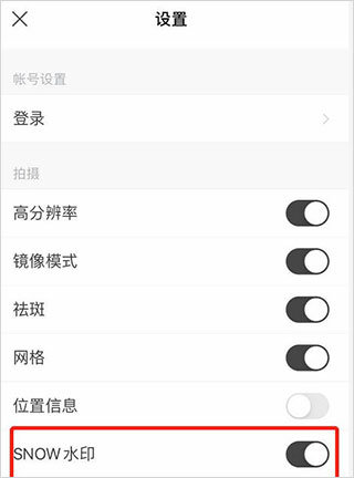 4、于设置页面里找寻“SNOW水印”这一选项。