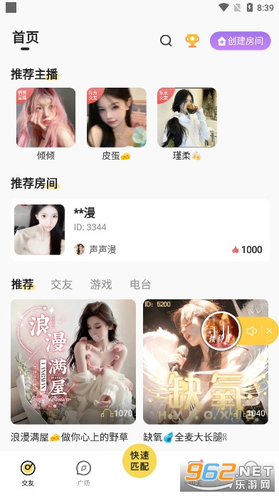 1、这里的各种交友服务随时去进行,不同的语音房间直接去选择,让你 聊天交友 都可以任意去进行,聊天互动方式无比的简单