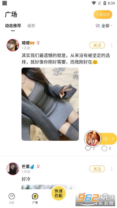 3、广场交友列表,在平台更好去进行动态查看,交友任意进行。