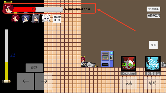 1. 可在左上方的血条处查看敌人剩余数量。