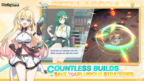 4、玩家需要组建三人小队挑战风格各异的星塔。随着层数的提升,旅人少女们会获得随机的强力天赋,逐步增强实力。登塔过程中不仅有战斗,还会遇到各种机遇与风险并存的选择,需要玩家根据当前战力做出明智决策。