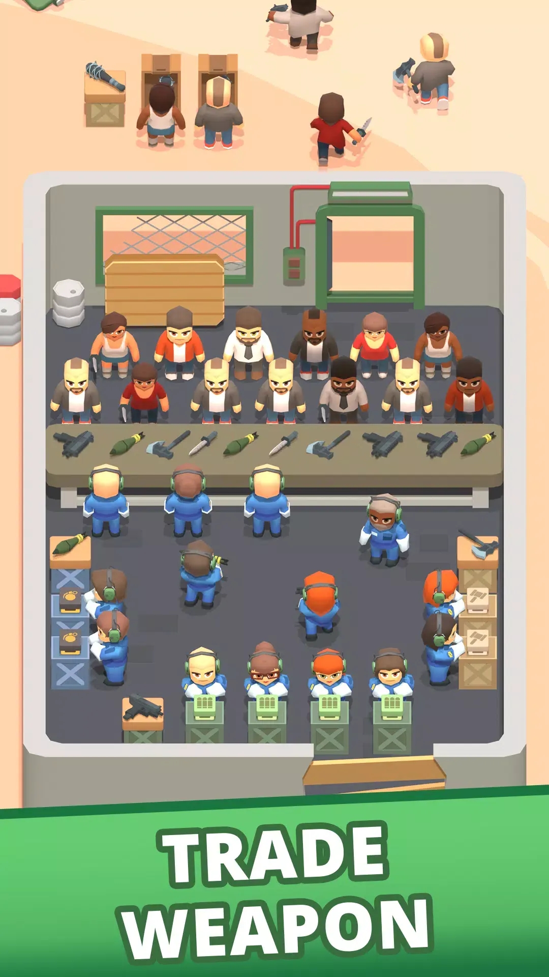《Idle Army: Trading Weapons》的主要特点:放置制造:看着你的技艺精湛的工人不知疲倦地打造一系列致命武器。