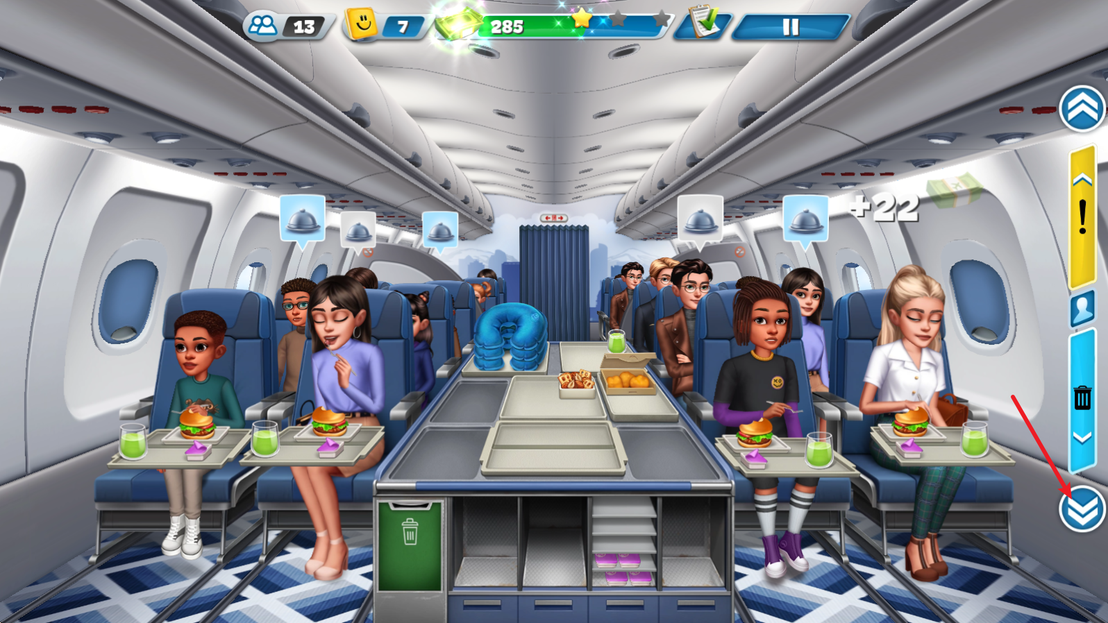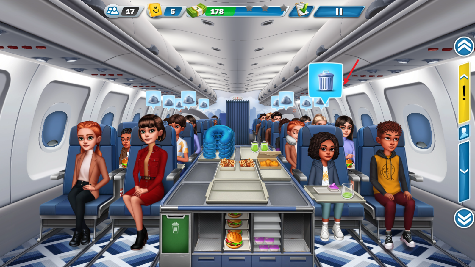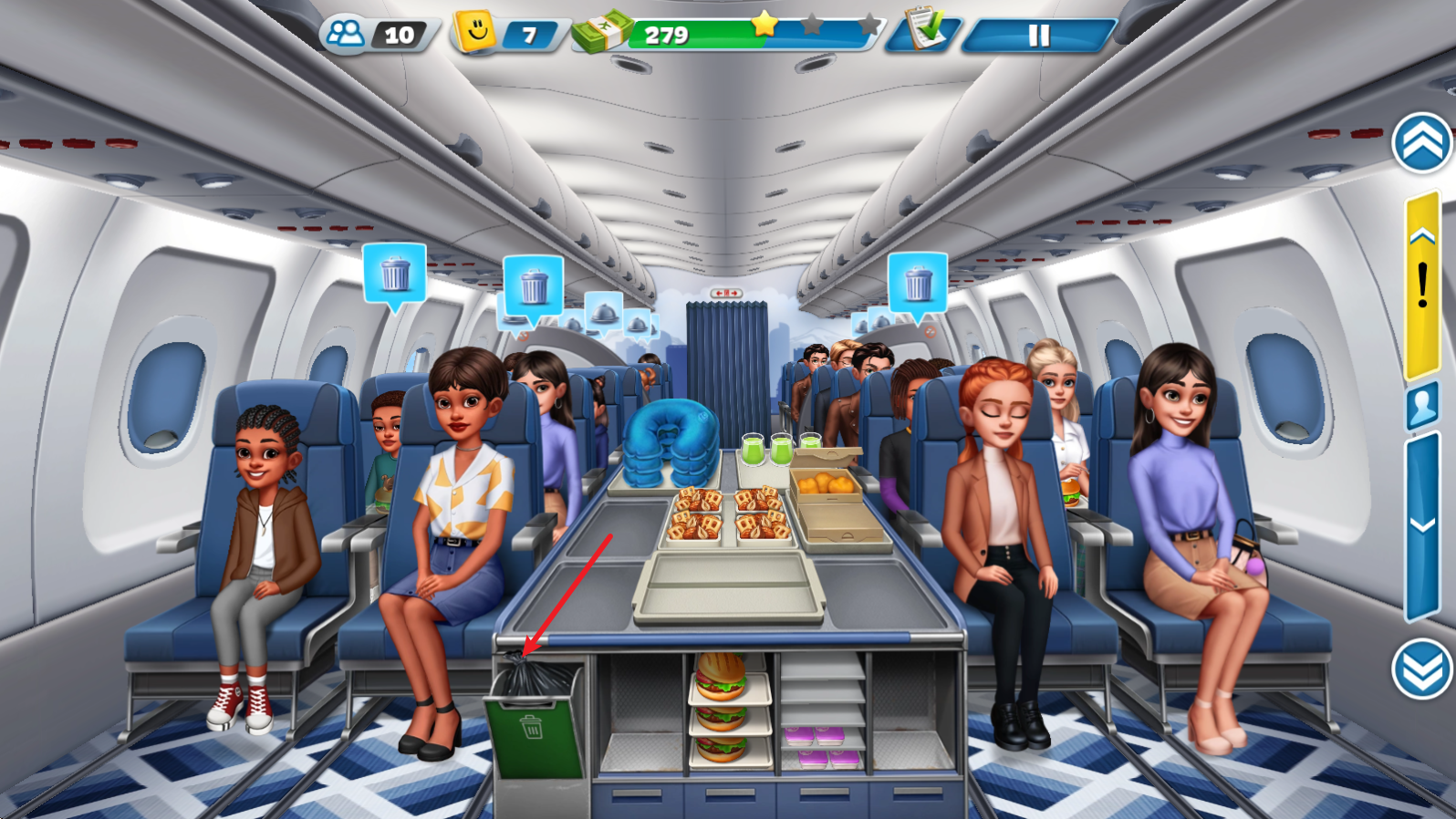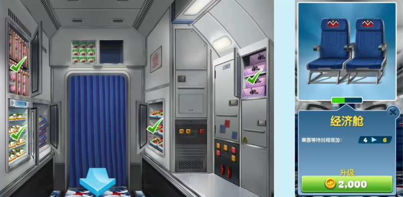 3、之后就可以前往客舱进行服务,根据客人需求拖动对应食物到其身上即可。