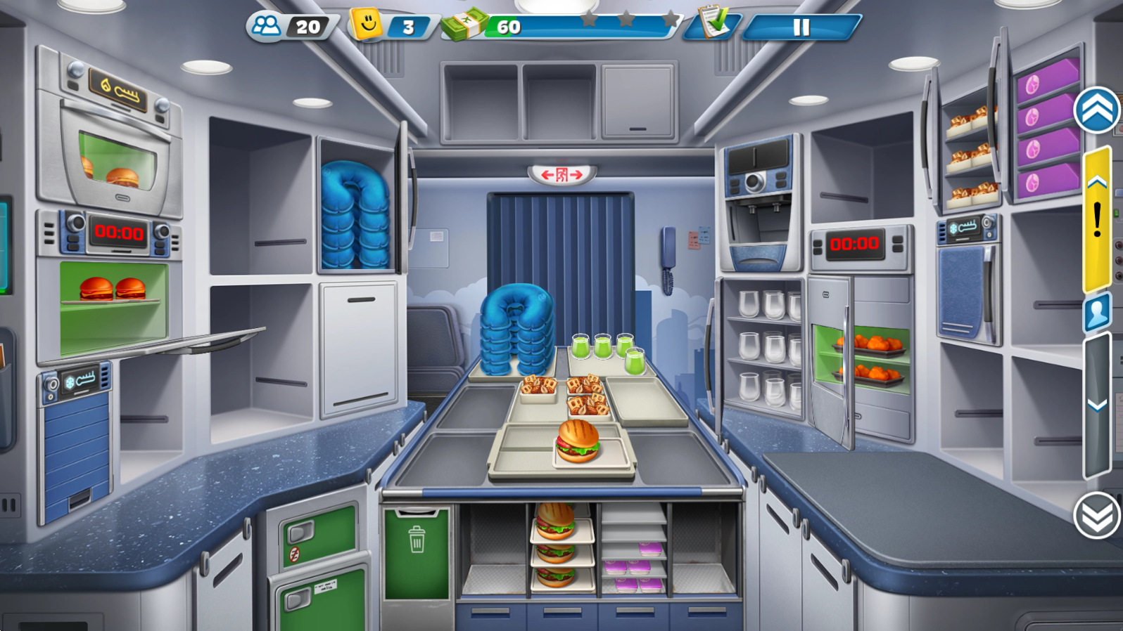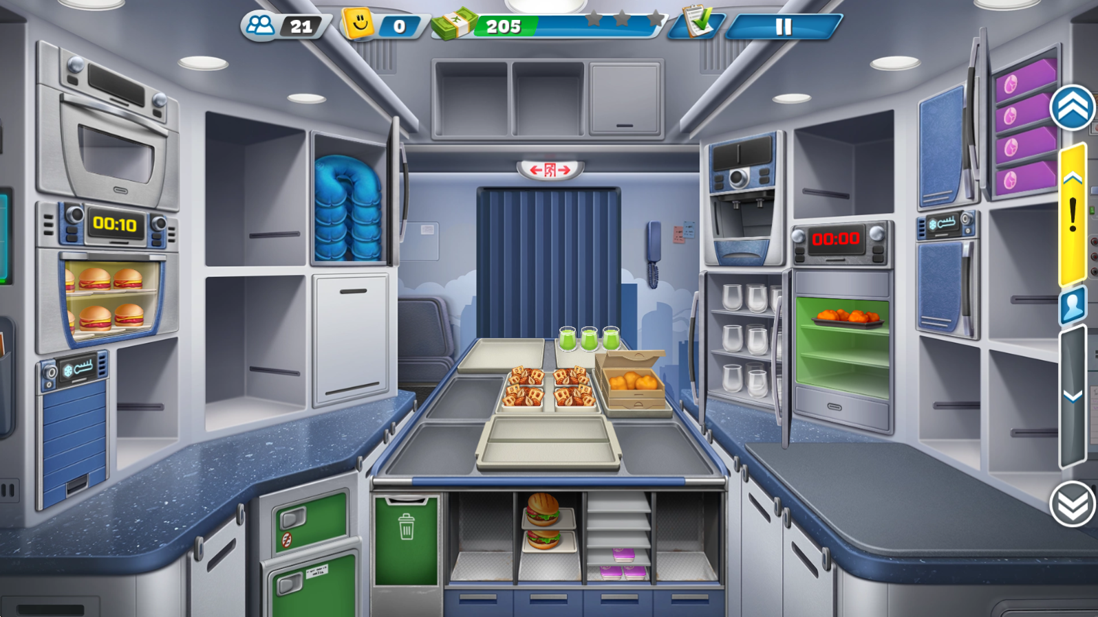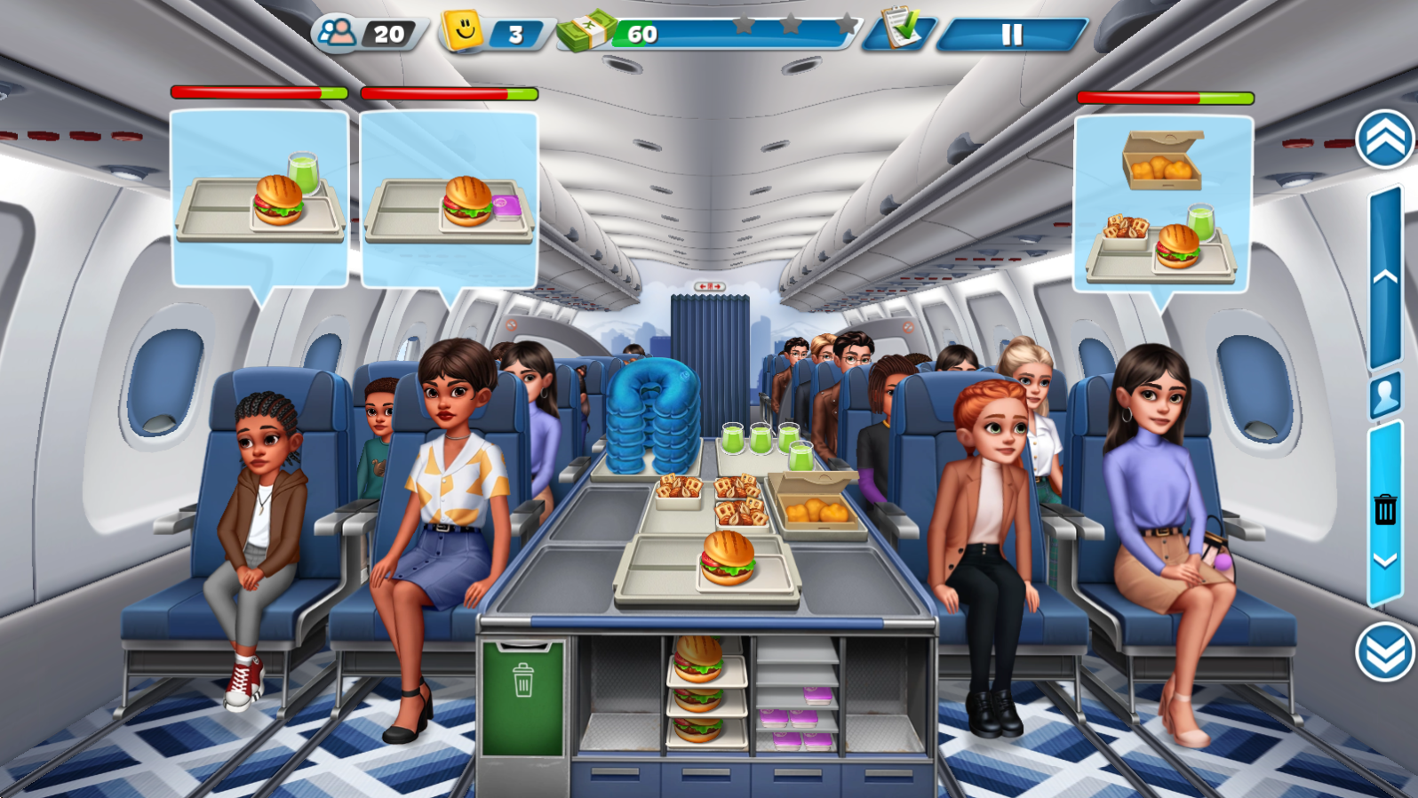 3、之后就可以前往客舱进行服务,根据客人需求拖动对应食物到其身上即可。