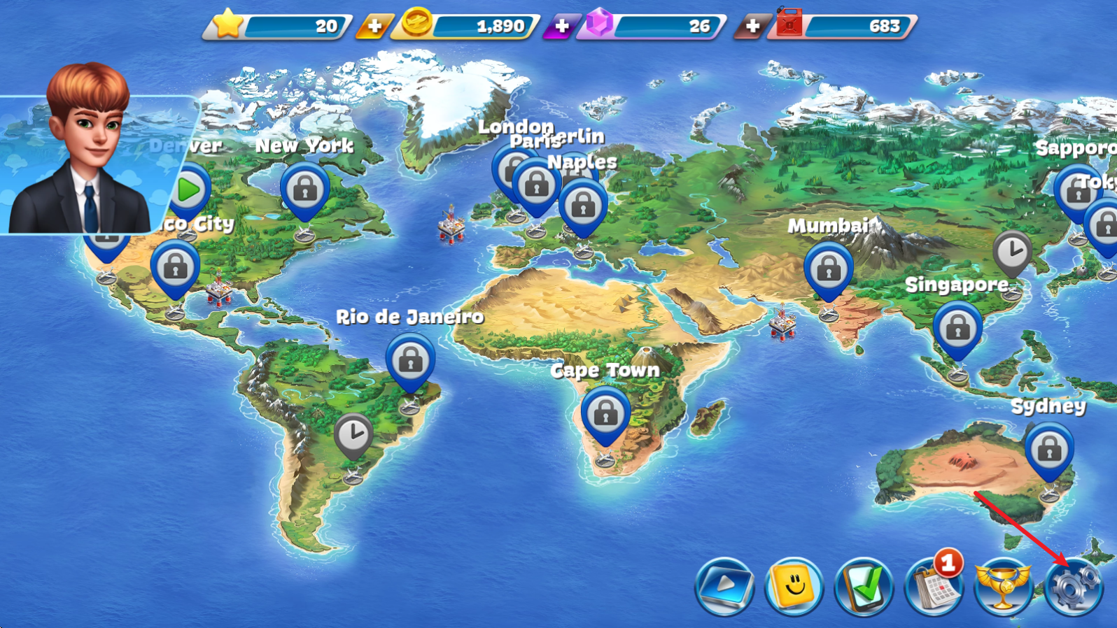1、进入游戏之后,点击右下角的齿轮图标,从而进入设置界面。