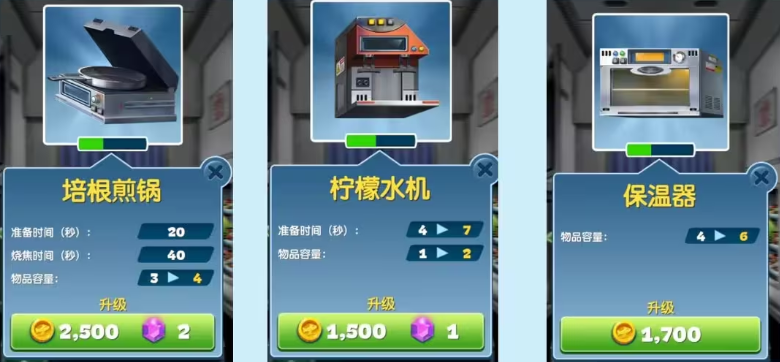 2、合理的去规划你的设备升级,这样才能让制作的过程更加有效率,并且食物的收入也能有所提高。
