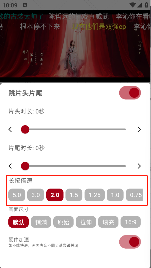 2、于弹出的页面里,挑选需要调整的倍速就行。