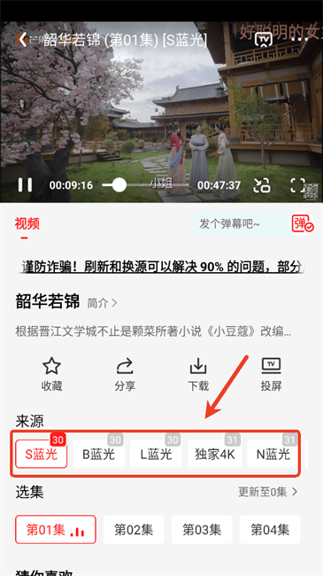 2、点击选中的影视进入播放页面,选择想看的集数。