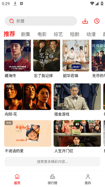 首页顶栏把电视剧细致划分成电影、综艺、动画等不同类别,便于用户依据自身喜好迅速定位。借助榜单功能,按照人气对影视剧进行排序,向用户展示当下热门的影视剧,助力用户快速寻找到人气较高的作品。
