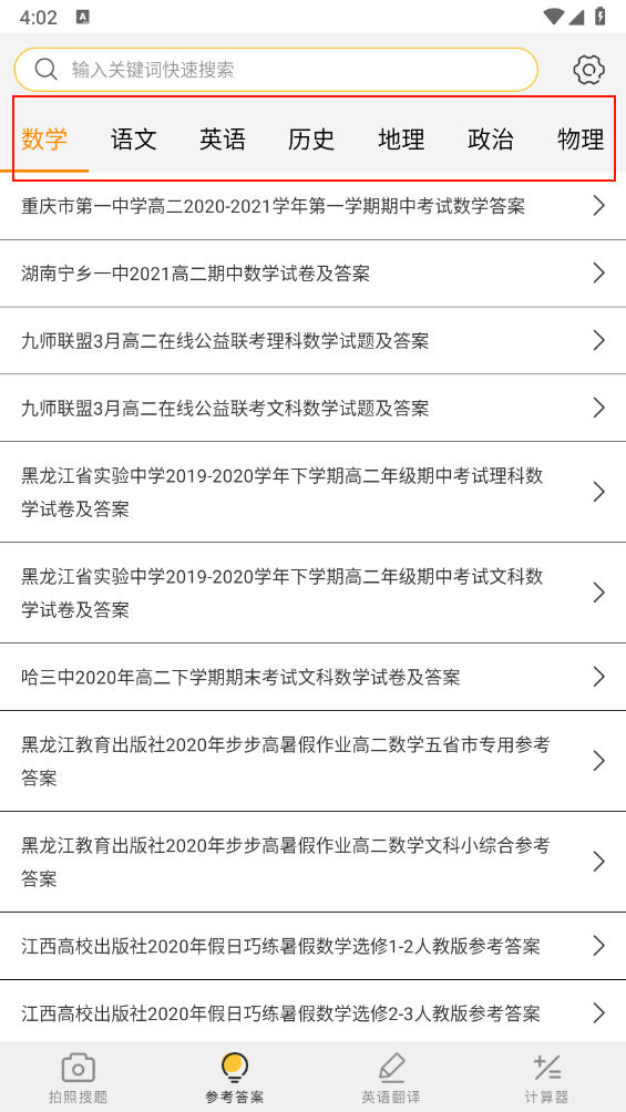 题库覆盖:数学、英语、语文、物理、化学、生物、历史、政治等,各科难题帮你解决。