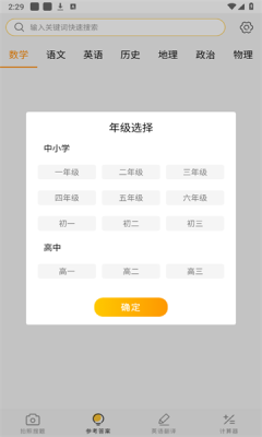 4、前往“参考答案”板块,选定相应年级后点击确认,就能查看相关试卷的答案。