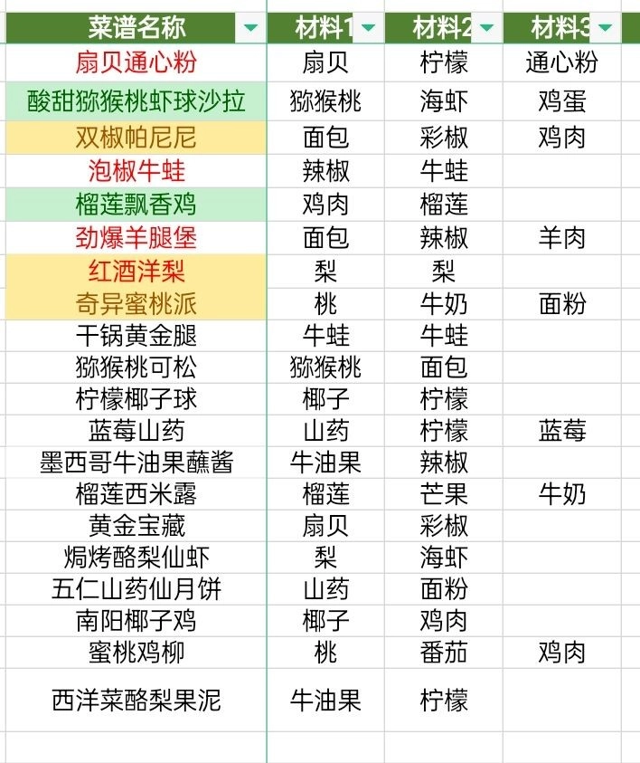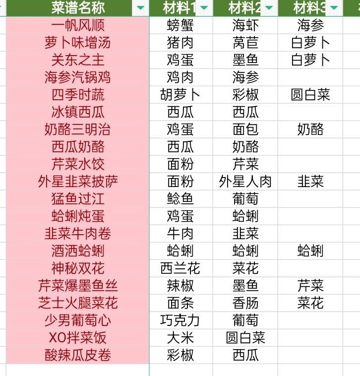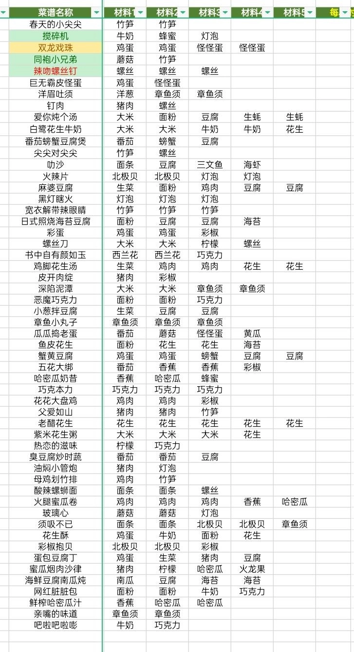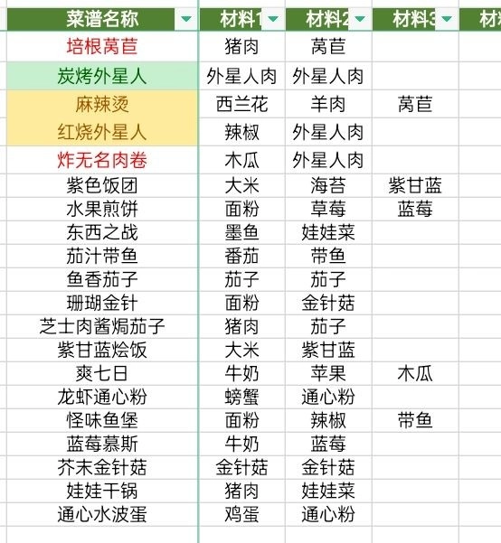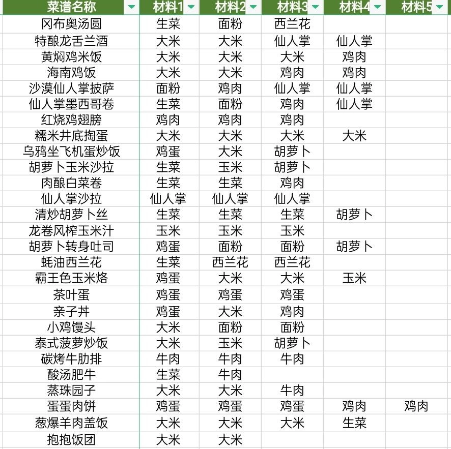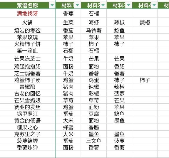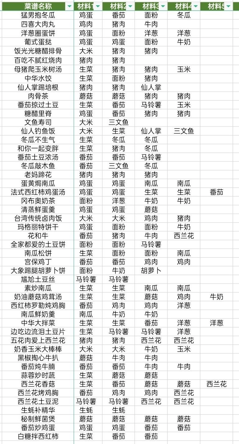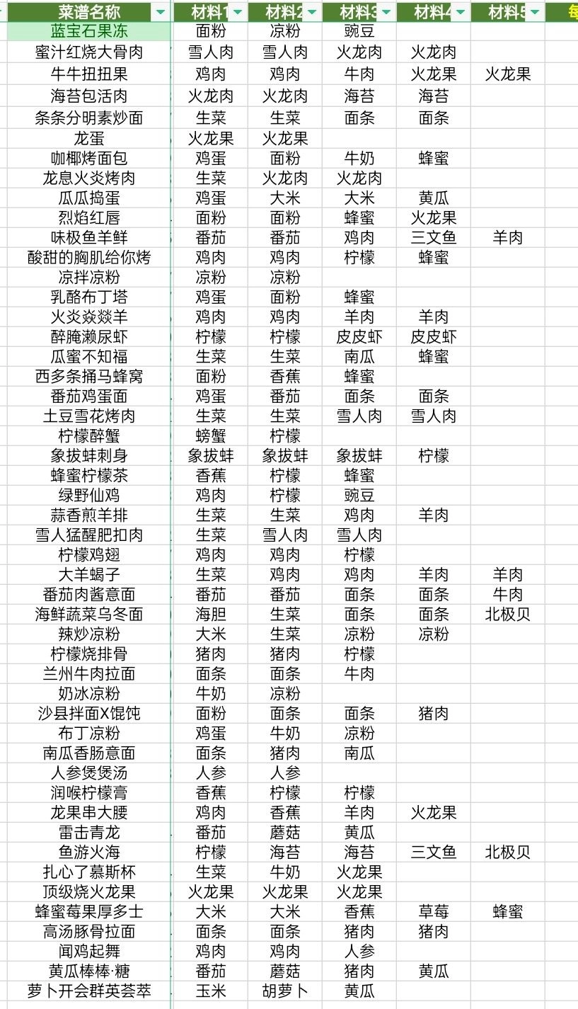 黑暗料理王菜谱配方大全