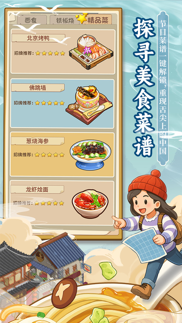 1.真实还原地方美食:游戏内收录了数百种地道的中国地方菜肴,从街头小吃到宫廷御膳,每一道菜都经过精心设计,力求还原其真实风味。
