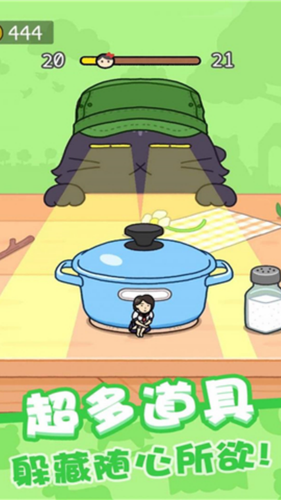 欢乐躲猫猫最新版本,是一款充满轻松趣味的休闲益智类游戏。进入游戏,玩家将操控角色投身于一场紧张刺激的躲猫猫大战之中,能够借助各式各样的道具,巧妙地躲开敌人的视线。这款游戏汇聚了海量场景,玩家可以持续解锁并迎接挑战,随着进程推进,关卡难度会逐步提高,趣味性满满。它的操作十分简易,采用卡通风格的画面,搭配超治愈的音乐,会让你一旦上手就根本停不下来。