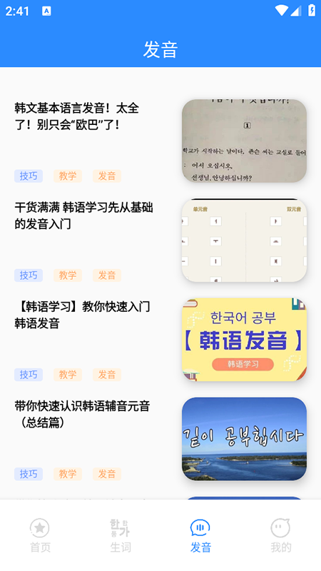 4、在“发音”板块,有韩语发音的基础知识文章。