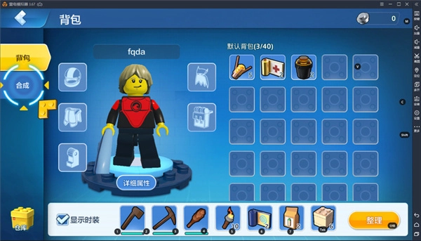 接着,我们能够查看背包中存放了多少物品。点击背包内的物品,可与快捷栏进行交互放置。目前,重点是点击合成按钮来制造物品。