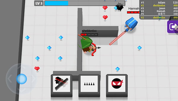 3、每位玩家的血量是有限的,被敌人的箭射中就会损耗一滴血,全部血量耗光时,即淘汰出局;
