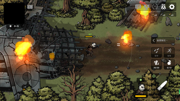 1、初次启动游戏后,通过左侧虚拟摇杆控制移动方向,右侧按钮负责射击与拾取操作。