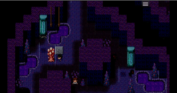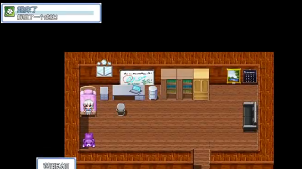 2D像素风画面效果,也是RM的常规画面,游戏画面没有填充设备整个屏幕,似乎适配方面还没做好。角色造型具有日系风特点,蓝眼姬造型挺别致,看着像coser一样。立绘品质一般,只有半身头像,常规地图下是Q版小人。剧情效果比较突出,一些未能显示出来的效果用飘字文本来表示,倒也能把效果描述清楚。