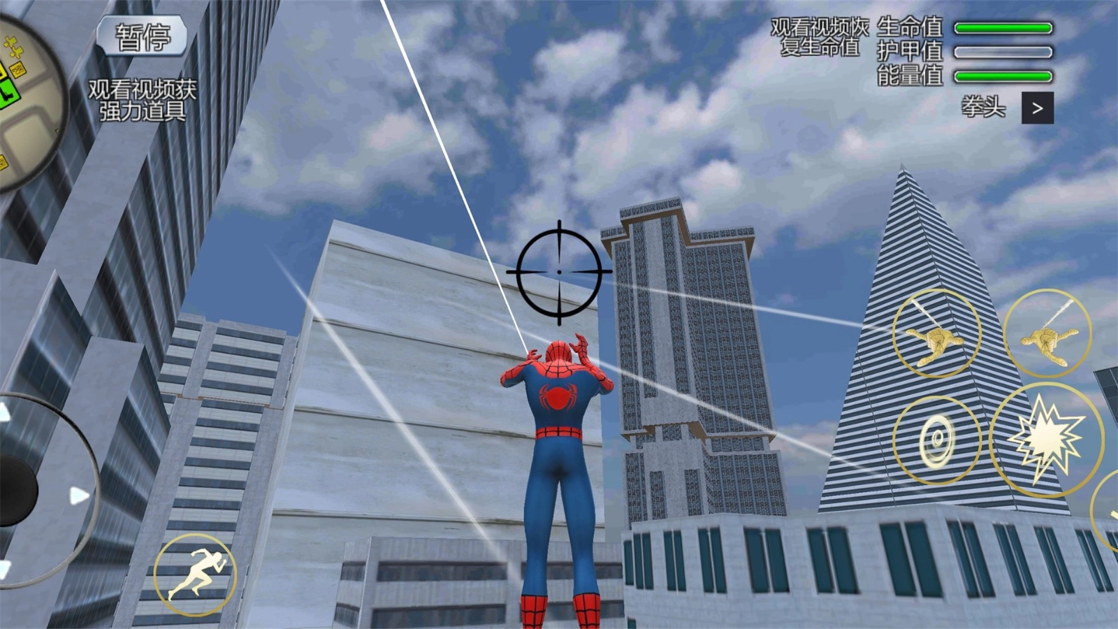 1.利用蛛丝在高楼间快速移动是核心玩法,玩家需要掌握时机和角度,实现流畅的空中摆荡前进;