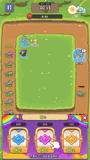 游戏中角色种类繁多,可供完成的挑战丰富多样,操作简便易上手,可招募的英雄数量也颇为可观,玩家能够从中体验到别具一格的塔防游戏乐趣。
