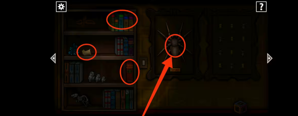 拿走书架上的第一张画像碎片和红色书籍(收集要素中可以查看),再用刀清理右侧的蜘蛛获得心形宝石。