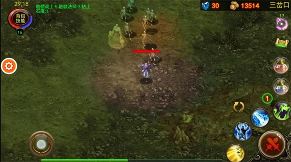 一路加点护甲、圣火、格挡、亲和,15级以后就可以去三岔口升级、去矿洞刷15级boss尸王,尸王可以在当前地图7.1和33.3等坐标卡位、然后刷点防御装、抗性装备就可以刷密林小径的20级boss珠后,在这个地图的62.26这里可以卡怪,利用远程武器攻击(飞斧小刀等)。