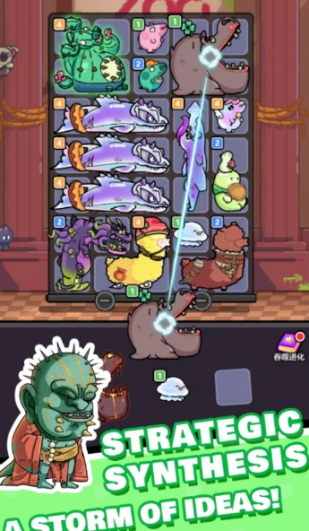 2、通过收集资源、挑战敌人,生物不断成长,形成强大战斗阵容。