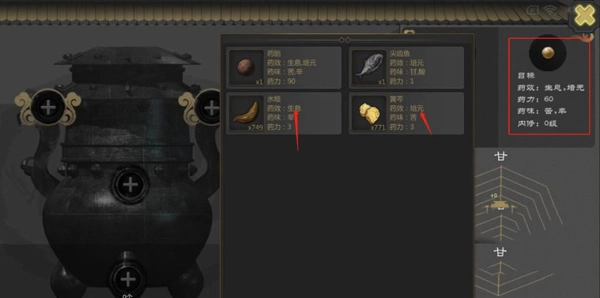 5、炼丹过程中还需维持内力运转,控制火焰强度。药材可通过地图采集或击败怪物获得,越稀有的药材采集难度越高。