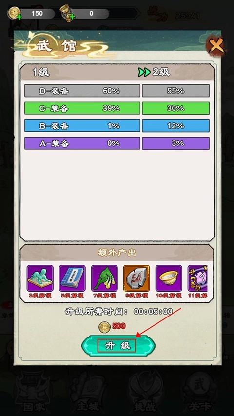 6、升级是需要花费时间的,玩家能够通过参与关卡挑战的方式来获取加速沙漏。
