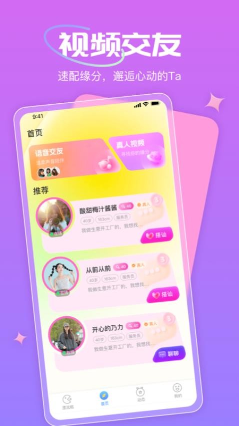 2. 实时互动交流:提供文本、语音、视频等多样化沟通形式,助力用户不受时空限制,随时与匹配到的对象畅快互动。