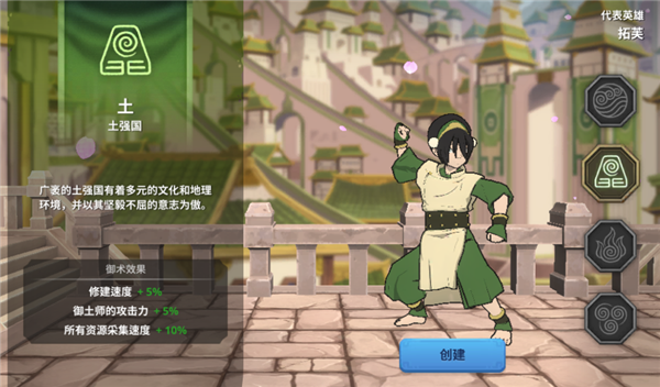 阿凡达领域冲突游戏手游正版(Avatar Realms Collide)是一款以策略实时对战为核心的游戏,在这款游戏中,玩家可以选择水、土、火、气四大元素之一来修炼。每个元素都有独特的好处:水元素让研究更快,土元素加速建筑,风元素提升招募速度,火元素增强战斗能力。这些选择会影响玩家的策略,让游戏更有挑战性和趣味性。玩家可以根据自己的喜好和游戏情况,选择最合适的元素来发展自己的文明和军队。这种设计让游戏更加丰富和有趣,值得玩家尝试。