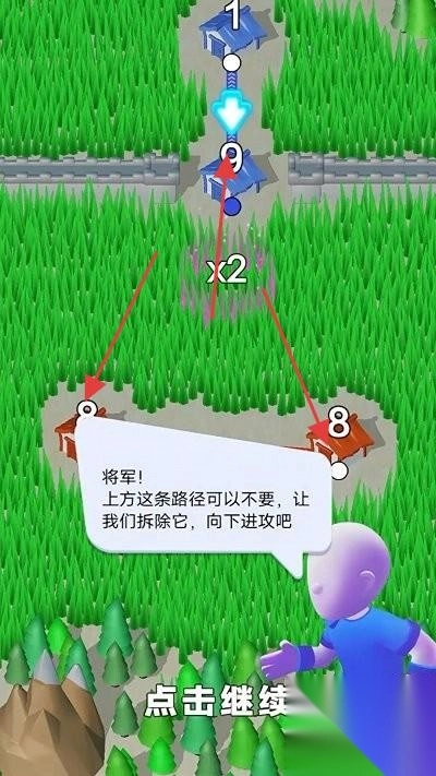 1、路径策略系统:玩家可通过滑动屏幕来绘制进攻路径。路径的长度、拐点数量以及角度,均会对士兵的移动速度与损耗产生影响。其中,直线冲锋的速度是最快的,然而这种方式容易遭遇敌人的伏击;与之相比,迂回包抄虽然所花费的时间较长。