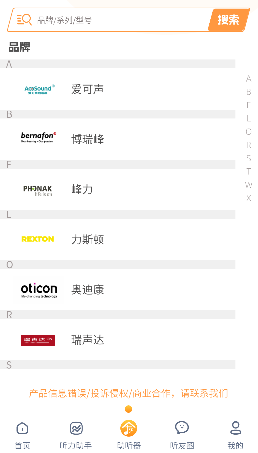 3、通过“设备库”筛选助听器品牌/型号,对比参数和用户真实体验,支持预约线下试听。