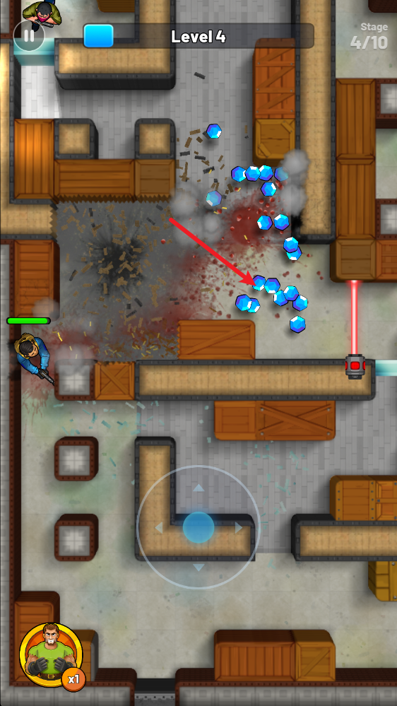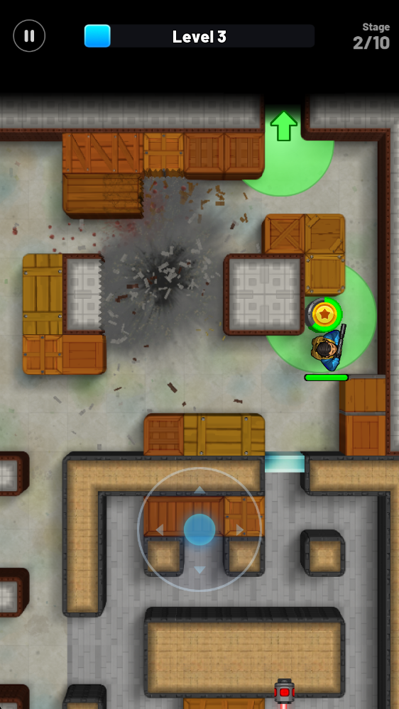 在游戏里,我们可以拖动下方的摇杆来控制角色移动。