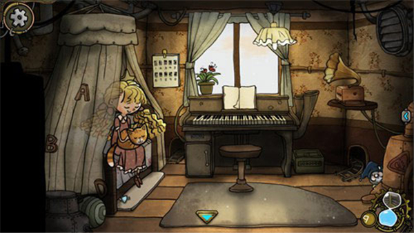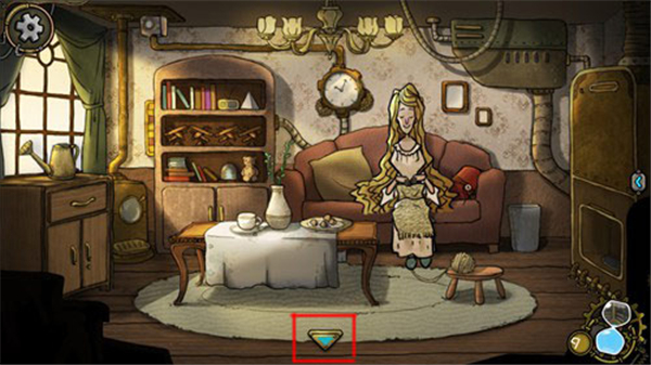 6、在客厅会跟母亲有一些剧情故事,母亲会让我们把做好的曲奇饼拿到楼上给妹妹,点击屏幕下面的返回按钮,回到大厅。