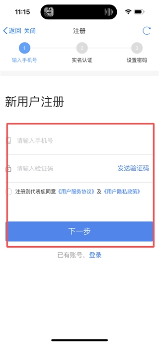 6、在新用户注册页面,依次完成注册流程,即可完成注册操作。