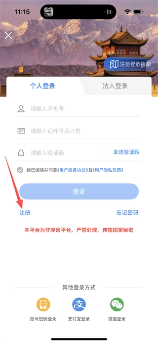 3、在登录页面,点击注册选项,进入注册使用说明页面。