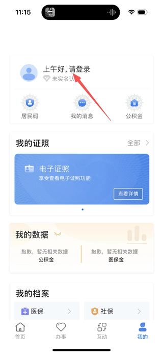 1、打开甘快办首页后,点击页面底部的“我的”选项,即可进入个人中心页面。