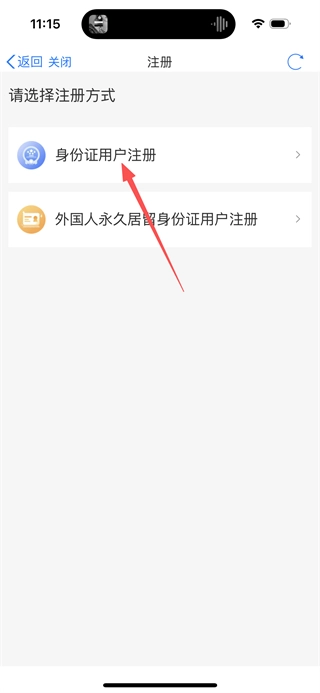 5、在注册方式页面,点击身份证用户注册选项,进入新用户注册页面。