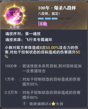 技能是单体攻击,但是会根据目标的血量,触发被动效果,进行单体或者群体追击,后续会根据魂环的年份提升,降低触发的条件。