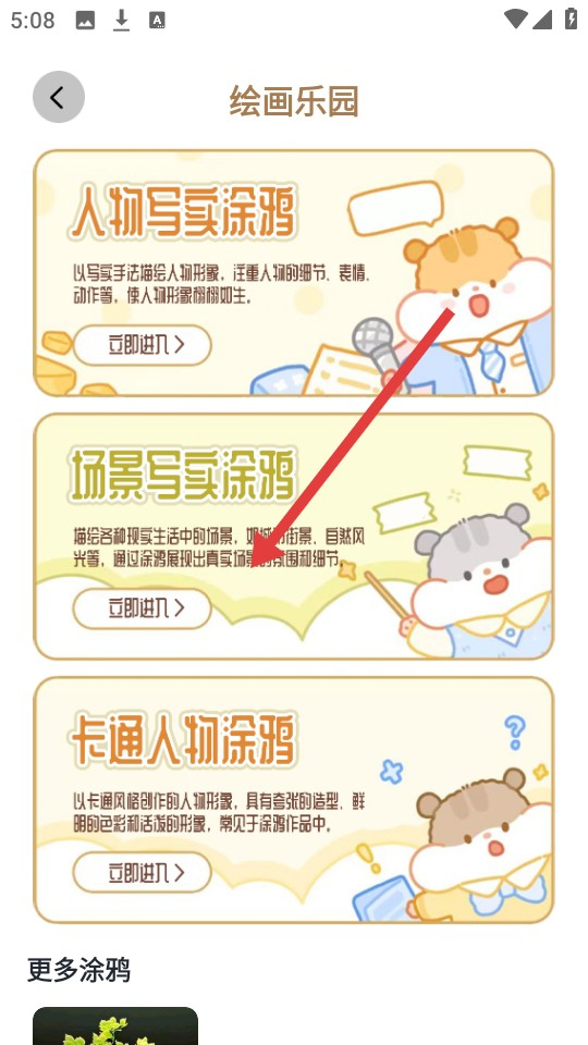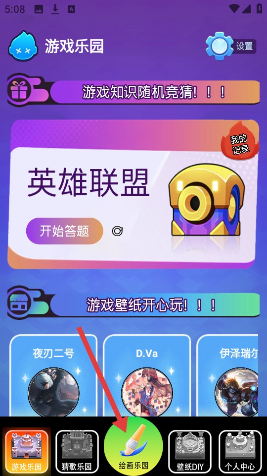 2、在底部导航栏,点击【绘画乐园】,进入绘画选择页。