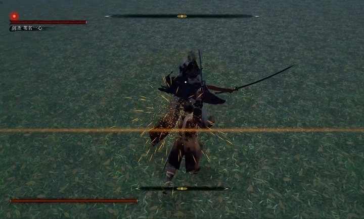 4、玩家与敌人在遭受攻击后都会出现招架条,其中敌方的招架条显示在上方,玩家的则位于下方。