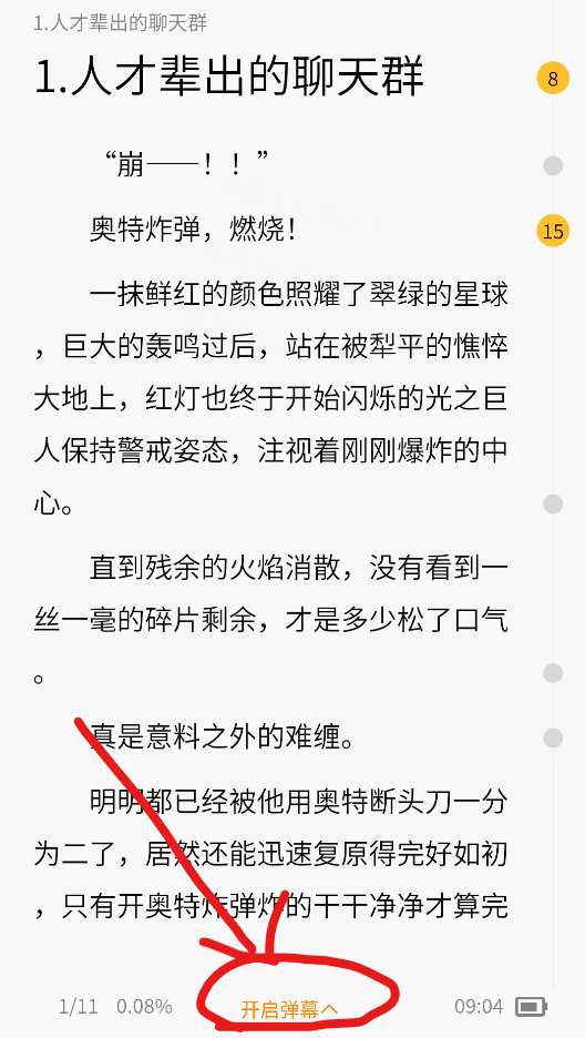 在进入阅读界面时弹幕就是关闭的