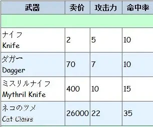 武器:一种增加攻击力的装备,游戏内部分武器有职业佩戴限制。武器分为匕首、剑、刀、双截棍、斧、锤、杖等。