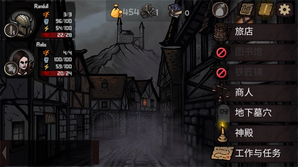 6、玩家在探索完一个区域后会抵达城镇,在城镇中能够进行休息、招募伙伴、购置装备以及承接任务等活动。