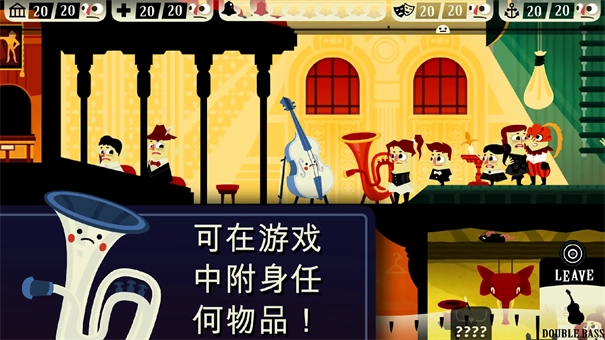 4、不同的道具,附身后会获得不同的效果。附身后,可以在下方气氛值刻度条上方看到操作提示,道具都包括了三种惊吓方式,第二和第三种方式需要满足气氛值要求,要求越高的惊吓效果越好。