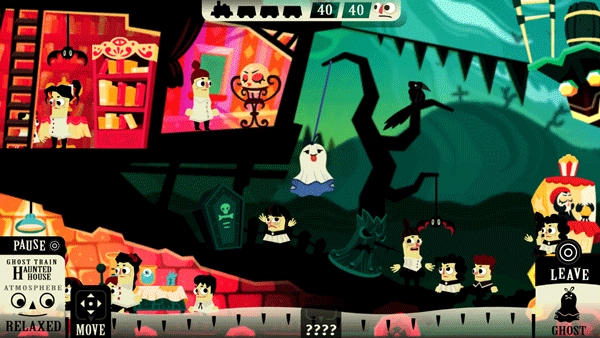 2、被惊吓后的人逃跑的方式是有一定规律的,轻度惊吓的人只会转身走开,去隔壁房;惊吓程度较高的人则会转身快速走开;很高程度的惊吓,对象会惊呼后转身跑开,如隔壁有楼梯则会走楼梯;最高程度惊吓后的人会惊声尖叫着转身快速逃跑,如果受到连续的重度惊吓则可能直接跳窗死掉。因此,想要尽快完成游戏,就要充分利用好这些规律,想方设法通过不同程度的惊吓把屋子里的人逐渐驱赶到1楼,最终让他们从大门处逃走。